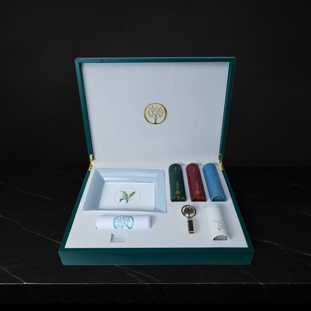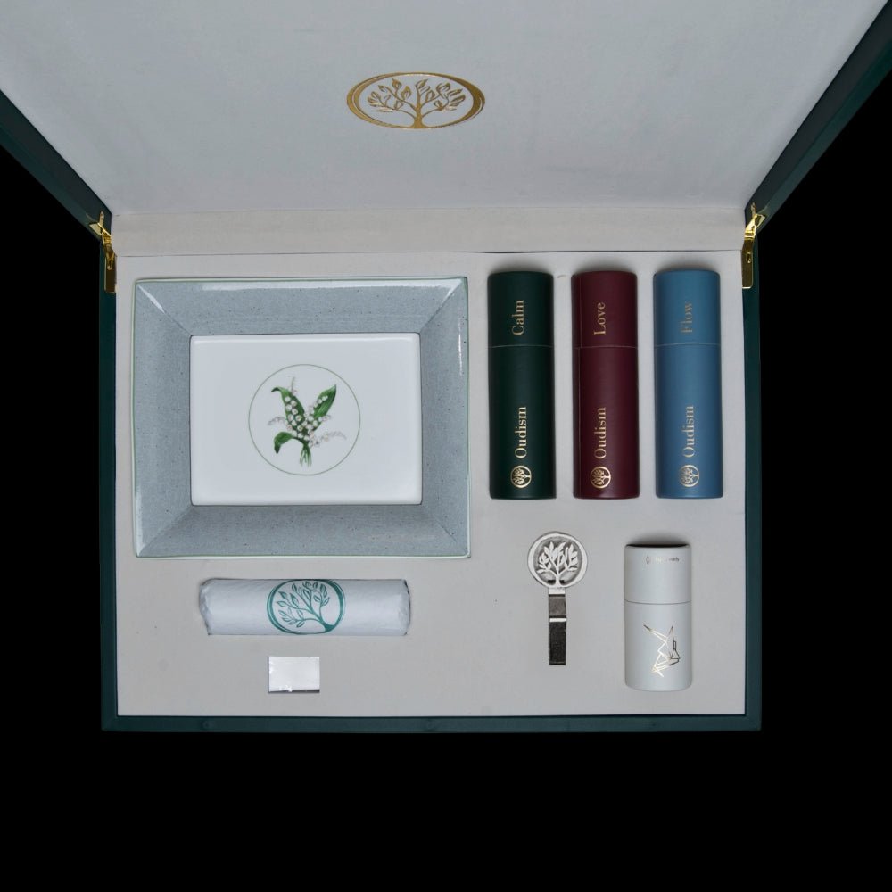 Each set contains a curated selection of our finest oud woods, burners, and accessories. The exact contents vary by set (Alpha, Sigma, Omega), each designed for a different level of exploration.