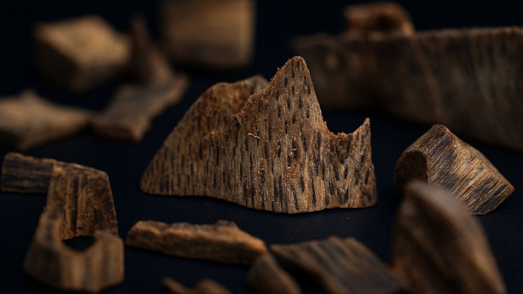 Spirit - Hainan Kyara Agarwood, with its rich dark color, opens with invigorating notes of coffee, pepper, and a kinamic overtone. It evolves into a complex heart of toffee, vanilla, and chicory.